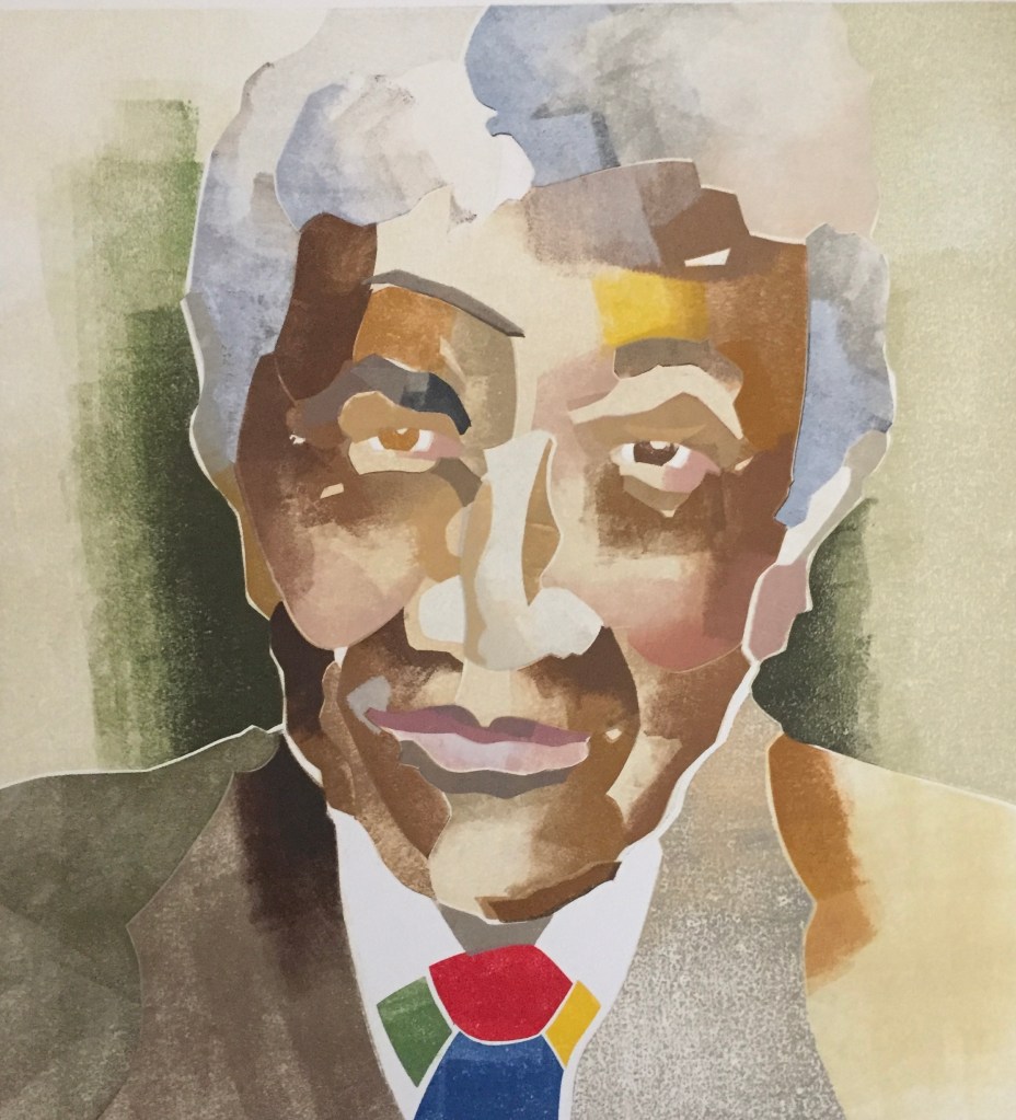 Voor de Vereniging van Nederlandse Gemeenten maakte ik een prent in opdracht voor een van haar scheidende directeuren die in het verleden in Zuid-Afrika was gestationeerd. De opdracht behelsde een portret van Nelson Mandela.